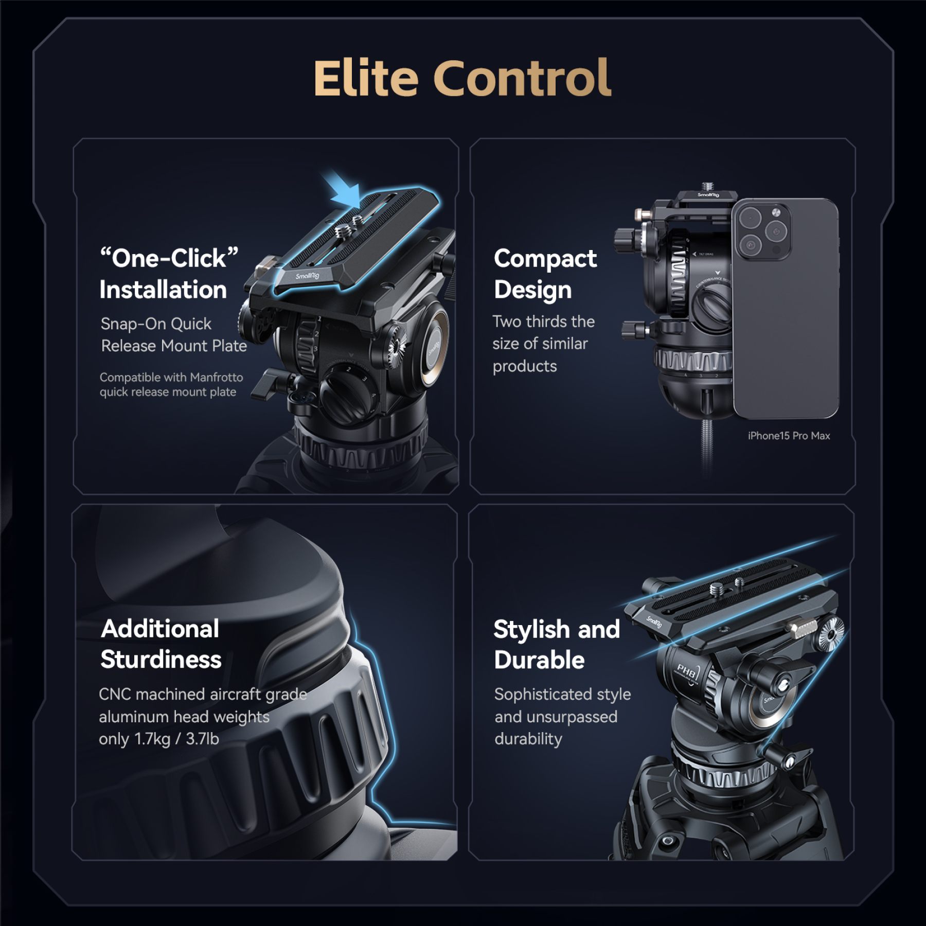 - Quick-Release Plate: Fast and secure attachment and detachment of your camera for convenience during filming.