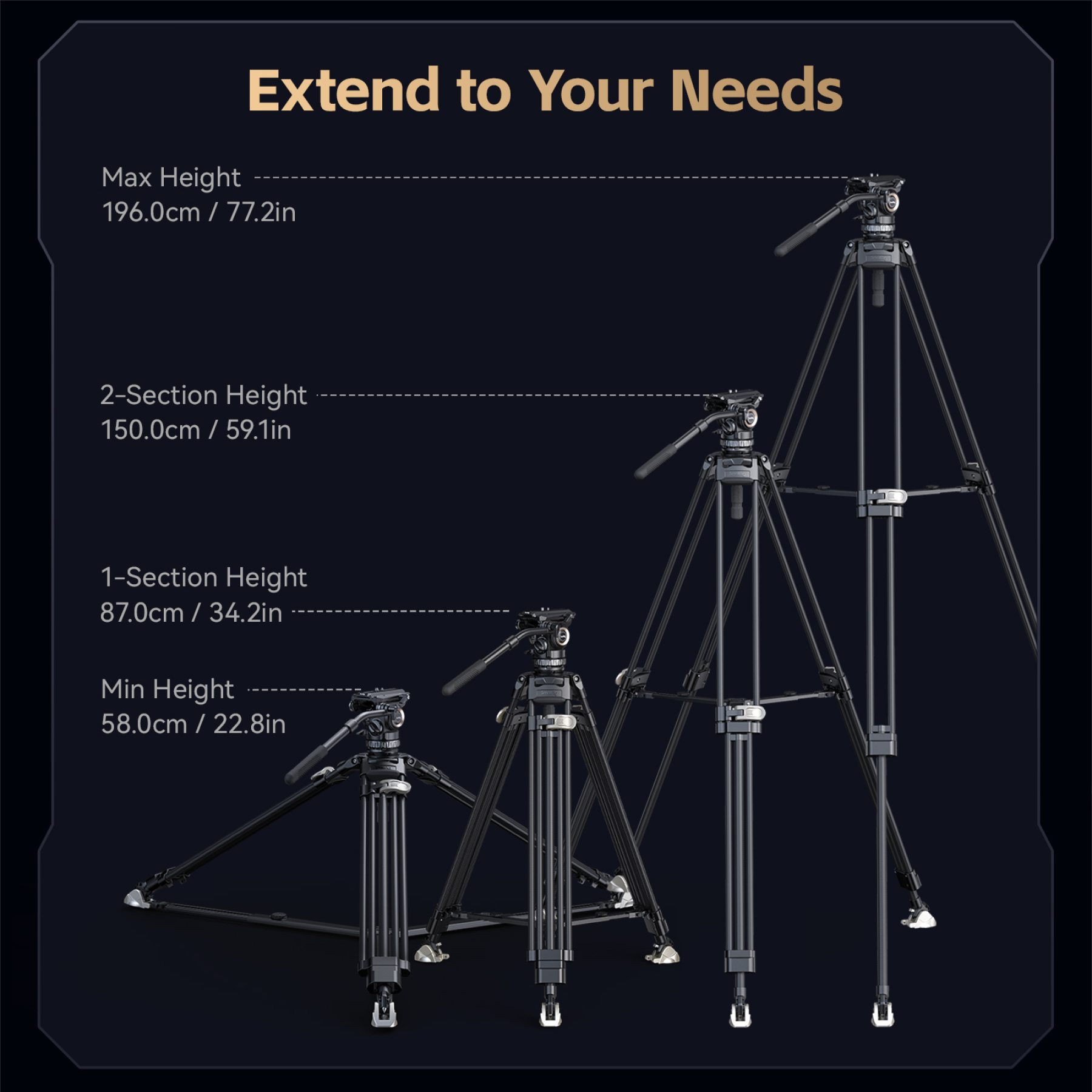 - Professional Fluid Head: Ensures smooth panning and tilting for cinematic shots and dynamic movement.